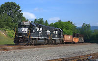 NS 5816 running long hood forward while delivering boxcars to a local business