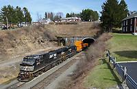 NS Train 23Z heads West out of the portal in Gallitzin. The tunnel which contains tracks 2 and 3 were opened in 1904 for the Pennsylvania Railroad.