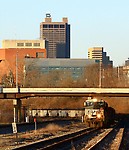 With only 8 scheduled trains a day on this once busy NKP line through downtown Cleveland, catching 5 in one hour was a nice treat. Here, a rerouted NS 261 starts back up and is following 205 after... (more)