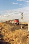 A westbound out of the Pacific Northwest behind two new SD70Ms rolls through Sheridan on SP's East Valley Line.