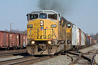 The Leesdale Local backs its trio of SD60 variations onto a cut of autoracks near Gemco Yard. Today's train had the lead triclops, a more common (on this train) double window in the middle, and an... (more)