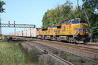 The express produce train, run as a joint venture between UP, and CSX crosses the Marcy Trestle, on its way to Schenectady NY.