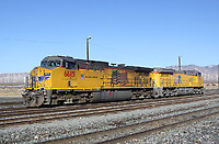 A pair of UP repaints await assignment at the south end of the Mojave yard.