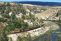 UP 7290 moves west over a bridge along the Dotsero Cutoff.