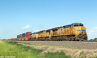 UP 7520 powers a westbound stack train on the Kearney Sub.