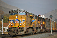 Union Pacific train ILBOA 08 (Long Beach, CA to Oakland, CA), led by ES44AC 7712, splits the signals as it heads north through Caliente, California, in the Tehachapi Mountains, on November 8, 2008... (more)