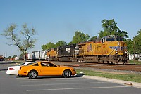 A colorful duo of GE's leads UP's Valmy coal empty south through the Grant Tower area of Salt Lake City. The train will tie down at East Roper upon arrival. At 11:00, a fresh crew will forward the... (more)