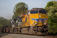 Captured a few minutes before sunset, a Union Pacific North Platte to West Colton freight picks up speed departing Salt Lake City at CP C782, Ninth West. The Union Pacific depot is visible behind ... (more)