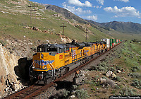 One of UP's hottest Central Corridor trains, the ZCIG1 (Expedited Intermodal – City of Industry, CA to Global 1 (Chicago), IL) heads east through the Weber River Valley at Henefer.