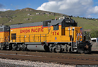 A clean pair of EMD GP15-1 motors work the head end of UP's YSC22R remote control switch job at the south end of UP North Yard in Salt Lake City.