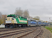 AMT 1323 is leading AMT 90 through the crossovers and is passing new signals which are only about 2 months old. For more train photos, click more)