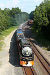 SP 4449 heads through a super-elevated curve as it nears the Indiana border.
