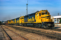 Shortly after sunrise, an eastbound hotshot storms up out of the shadows of the pass with an 60M A-B-A-A set. The once spiffy new Super Fleet paint on the Warbonnets was already by the mid-90s ... (more)