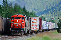 A pair of CN's SD60Fs lean into an "S" curve east of Henry House on CN's Edson Sub with Winnipeg bound train M304.