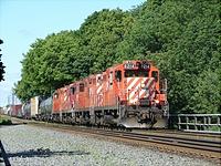 CP T60 Transfers heads westbound on the south track with a 4 pack of GP9u's for Lambton Yard.