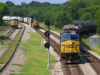With an S612 waiting for a new crew on track 2, M707 traverses the s-curve at Bell Street as it makes its way off the Prattville Branch and on to the S&NA yard.