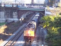 CSXT P912 races thru Mckeesport with a pair of EX-Amtrak F40PH's leading the way.