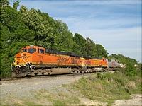 ATDA, led by 3 BNSF units, pulls ATDA across the Big Black on a very nice "day before the first day of fall."