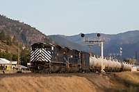 The Montana Rail Link's night gas local with its famous white tank cars follow the Clark Fork River west of Plains, Montana, on MRL's 4th Subdivision. The cars are destended for Thompson Falls whe... (more)