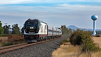 Amtrak 508 has just started its 310 mile trip from Eugene to Seattle as it passes the water tower at the new Oregon State Hospital. Local icon Spencer Butte looms in the distance. This is the only... (more)