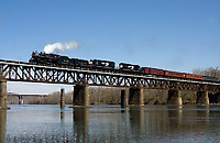 The Junita River was a tad bit col but was worth getting the first of three NS Memorial Weekend Public Excursions with NKP 765 is seen crossing the concrete arch bridge in Mount Union, PA.