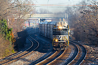 An NS ACe solo leading a manifest train through Lafayette Station