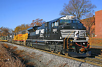 A veteran C40-8 leads train 338 into the sweeping curve at China Grove. This shot was not possible up until a few months ago when Norfolk Southern and contracting firms cleared the land and woods ... (more)