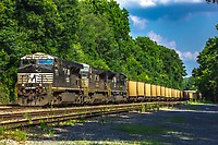 NS #9742 leads two other NS motors (one being the NKP Heritage) on a westbound #751 hopper train approaching Asheville.