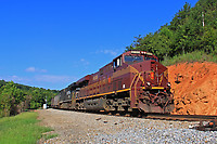 The NS 4000 and NS 4001 "DC to AC" units lead the NS 756 over the climb of Starkey Hill and continue south to Belews Creek Steam Station.