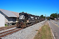 NS GP38-2 5122 and SD40-2 6079 takes G07 south on the F Line from Machen to Macon on it's triweekly run as it passes along old SR11 in rural Jones County two miles south of Round Oak, Georgia.