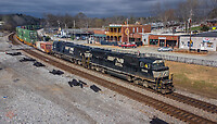 NS G88 rounds the curve at Bridge with a duo of SD40's bringing a, let's just say "short," transfer train to Whitaker. Note the Central of Georgia heritage unit on the point of 153 in th... (more)