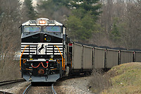 NS 7701 shoves hard on 100 loads of coal to get this train up the grade into Bristol on the A line.