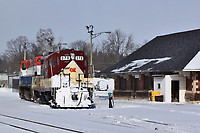 OSRX 378 and 644 sit idle outside of the station at Woodstock while their crew has lunch.
