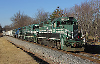 Paducah & Louisville train CC2 rolls through the sag in the tracks, coming into Vine Grove.