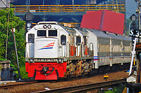 Progo train meet Taksaka train over the bogowonto bridge, Jenar, Central Java