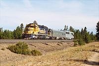 CP GP9 8205 of track inspection train at Ontario Northland's Moosonee station. Train includes 8205, converted box car 424994, car 65 and evaluation car 64. Ontario Northland contracts with Canadia... (more)