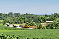 Five of the six Maryland Midland GP38s have their train on the move with 47 cars. The hoppers are from the Lehigh Cement Plant in Union Bridge and will be dropped off at the CSX interchange in Emo... (more)