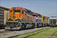 The BNSF run train MMEH2J has trackage rights but is stuck with the other UP trains in the Stuttgart Yard. BNSF 8026, HLCX 6024 (ex-BC Rail) and BNSF 4223 led as the power for this trip from Memph... (more)