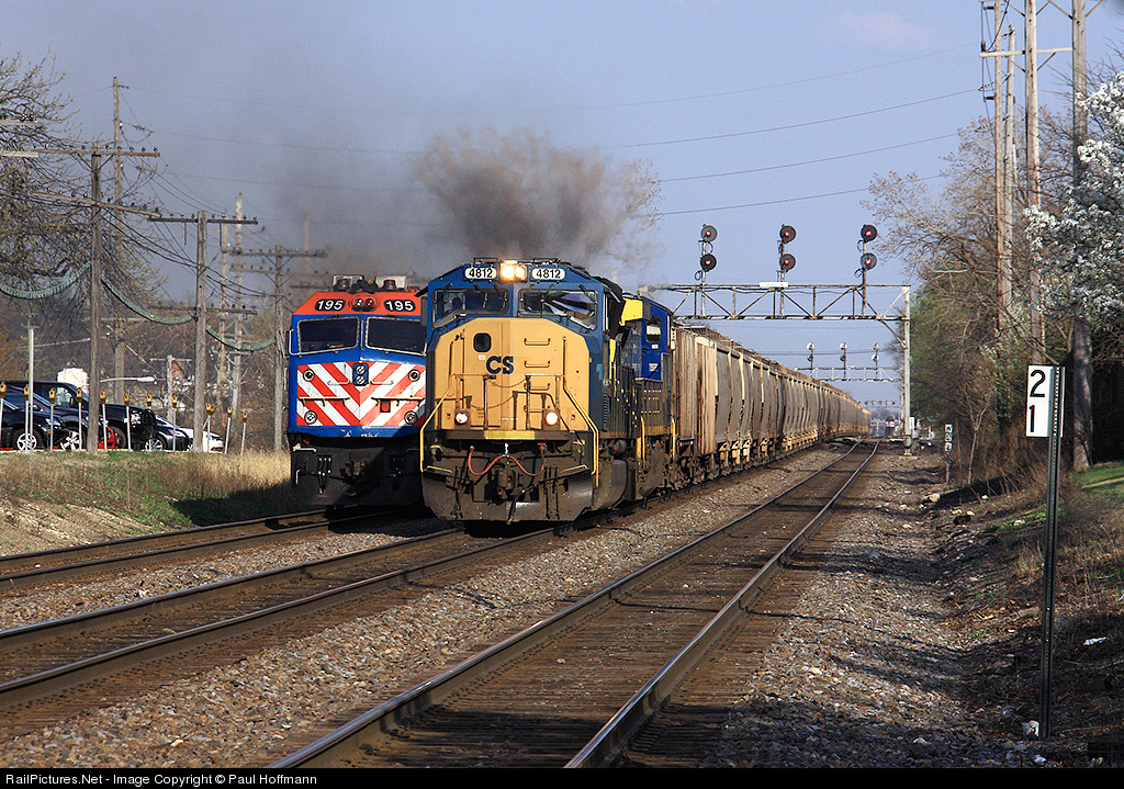 | CS...missing the "X" since at least July, 2010, the CSXT 4812 leads a hopper train westbound at the beginning of the afternoon rush. |