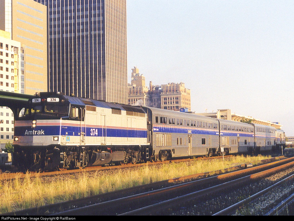 | It is a cold morning in Oklahoma City, and F40PH 374 reflects brilliantly the morning sun as the daily departure time of the Heartland Flyer for Fort Worth draws near. |