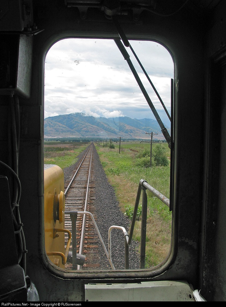 South bound UP 3676 is heading toward Brigham City, and then on to Ogden and Salt Lake City. Then west toward Kennecott Copper, where a consist of full sulfuric acid tanker cars will be traded for this empty one.