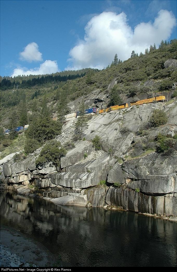 A UP stack train snakes through the Feather River Canyon. Nikon D70 24-120mm. www.bayarearailroading.com