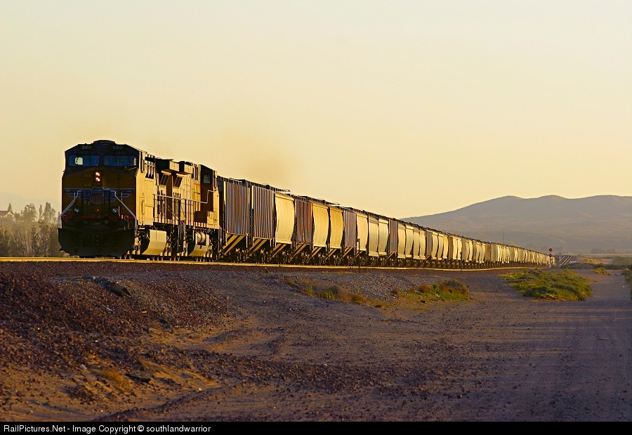 Bringing up the rear of an empty grain train as DPU, UP 5811 is passing through the small town of Lenwood, just west of Barstow along on the Cajon Sub.