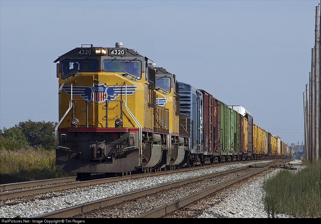 UP 4320 leads UP 4407 on West bound mixed freight.
