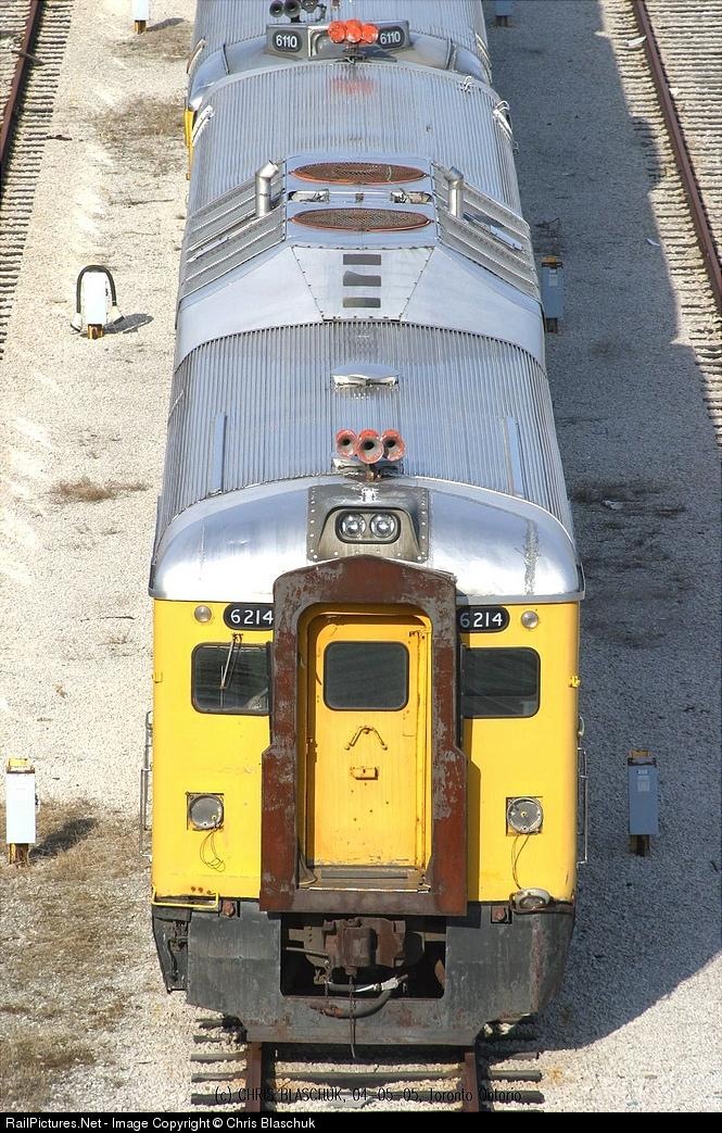 | 6214 and mates sit in VIA's TMC, rusting away. 6214 was built in July of 1956 as CP 9106, serial number 6311. |