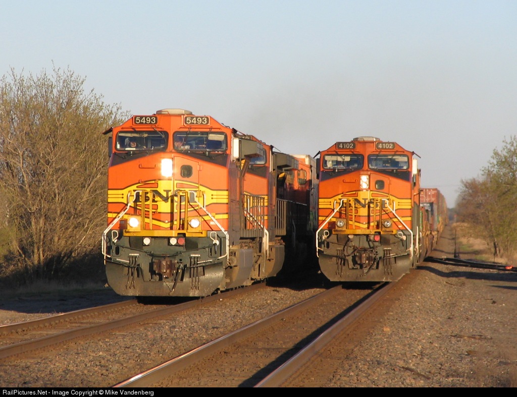 RailPictures.Net Photo: BNSF 5493 BNSF Railway GE C44-9W (Dash 9-44CW) at Verndale, Minnesota by Mike Vandenberg