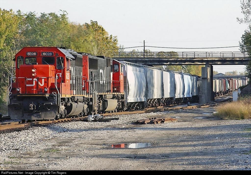 SD40u CN 6028 leads SD75I CN 5719 - North bound mixed manifest
