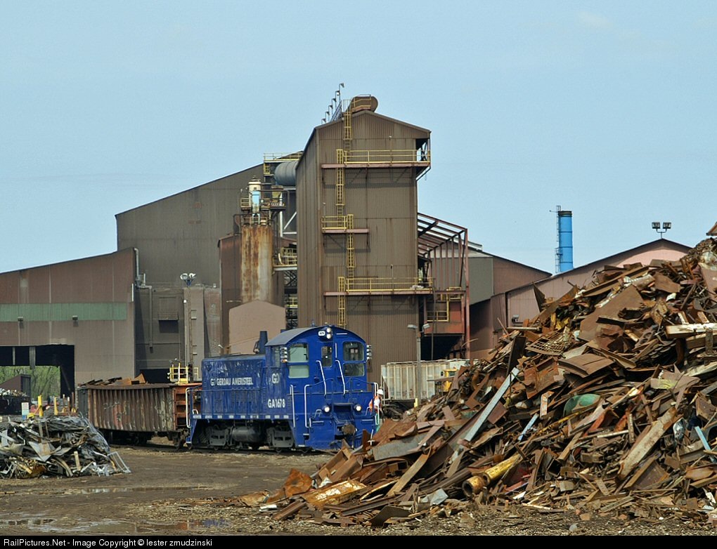 | Gerdau Ameristeel's remote controlled SW1200 moves godolas filled with scrap at mill in Newport, MN. Photo taken from public road. |