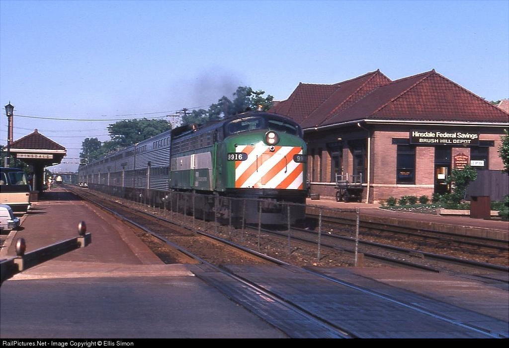 RailPictures.Net Photo: BN 9916 Burlington Northern Railroad EMD E9(A) at Hinsdale, Illinois by Ellis Simon