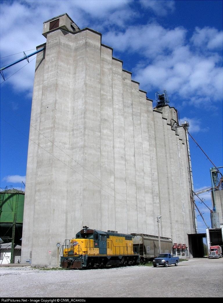 CNW 4153 sits in front of the DeBruce Grain elevator in Fremont, NE.